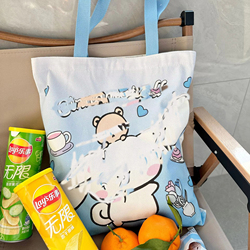Sanli Sac d'école en toile de grande capacité pour étudiants et enseignants Sac de tweet à motif de dessin animé mignon avec bandoulière