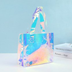 Custom Logo PVC Laser Handbag Geometric Pattern Transparent Jelly Effect Magic Shopping Gift Cosmetic Bag